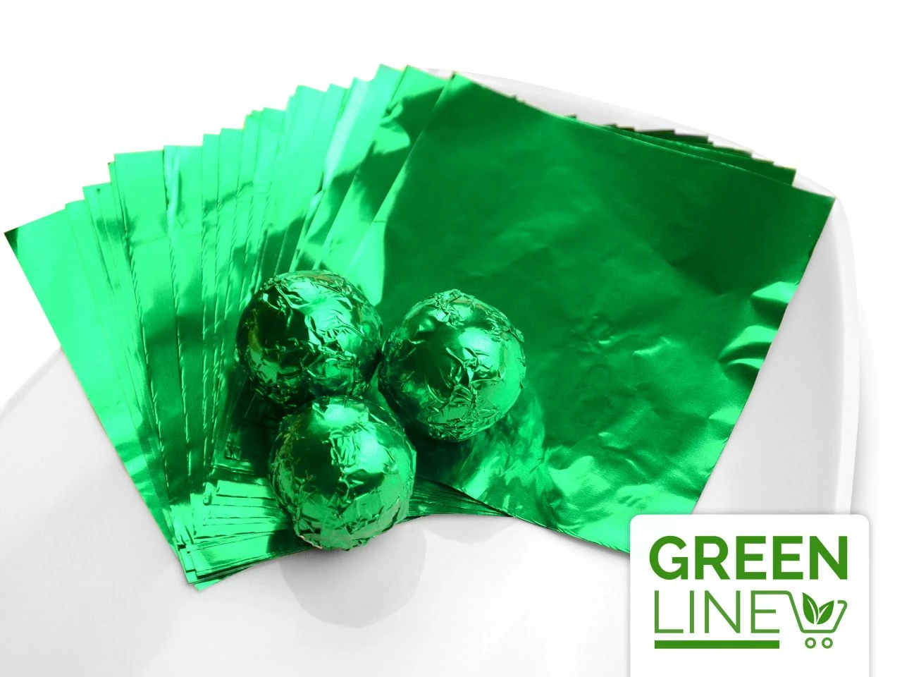 Unsere grünen Alufolien für Pralinen sind Teil der GREENLINE und werden nachhaltig verpackt, indem sie keine oder nur die nötigste Umverpackung erhalten.