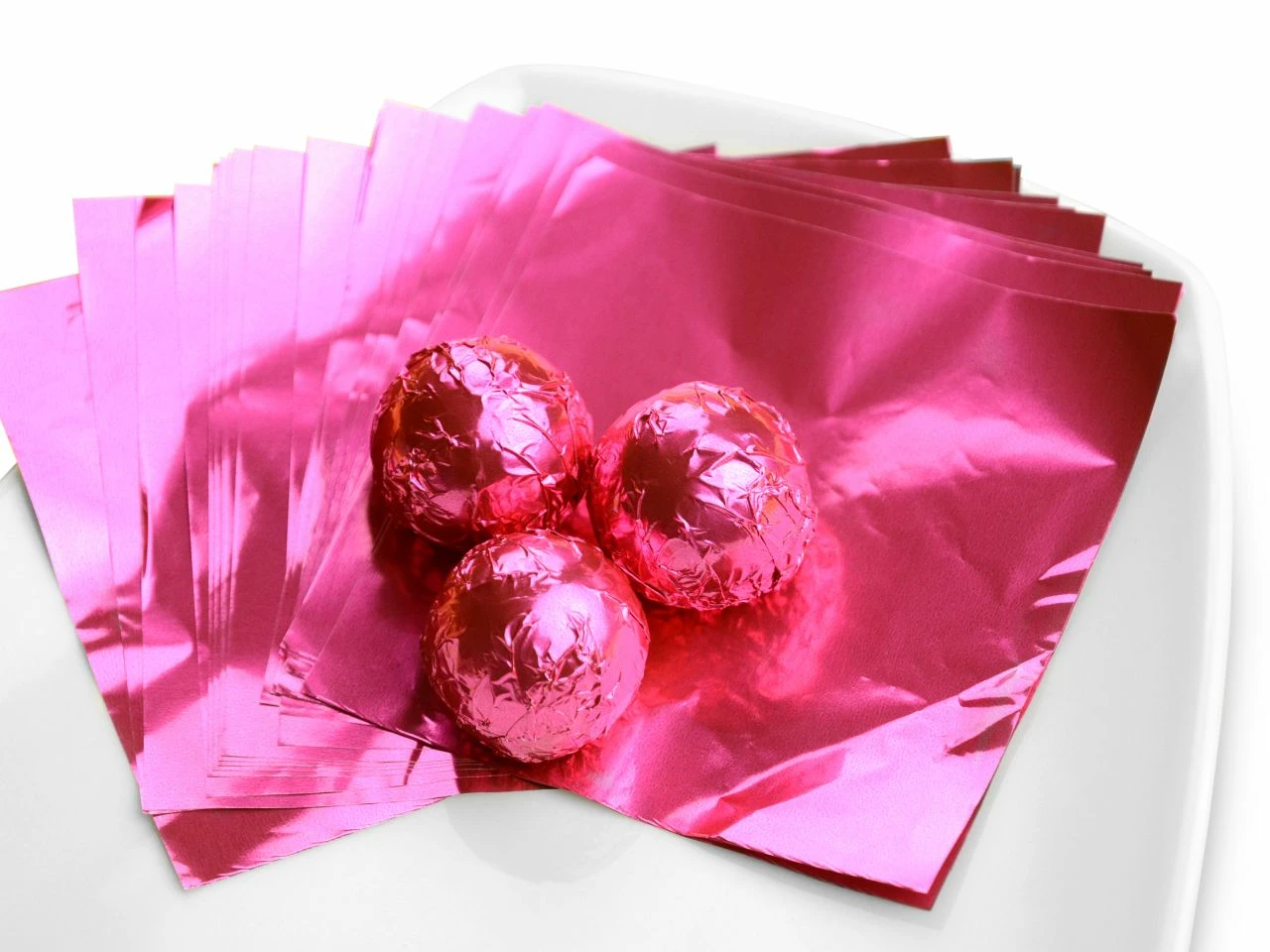 Unsere pinken Alufolien für Pralinen sind Teil der GREENLINE und werden nachhaltig verpackt, indem sie keine oder nur die nötigste Umverpackung erhalten.