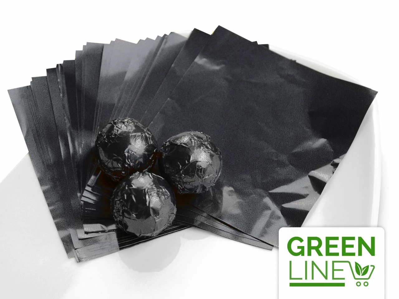 Unsere schwarzen Alufolien für Pralinen sind Teil der GREENLINE und werden nachhaltig verpackt, indem sie keine oder nur die nötigste Umverpackung erhalten.