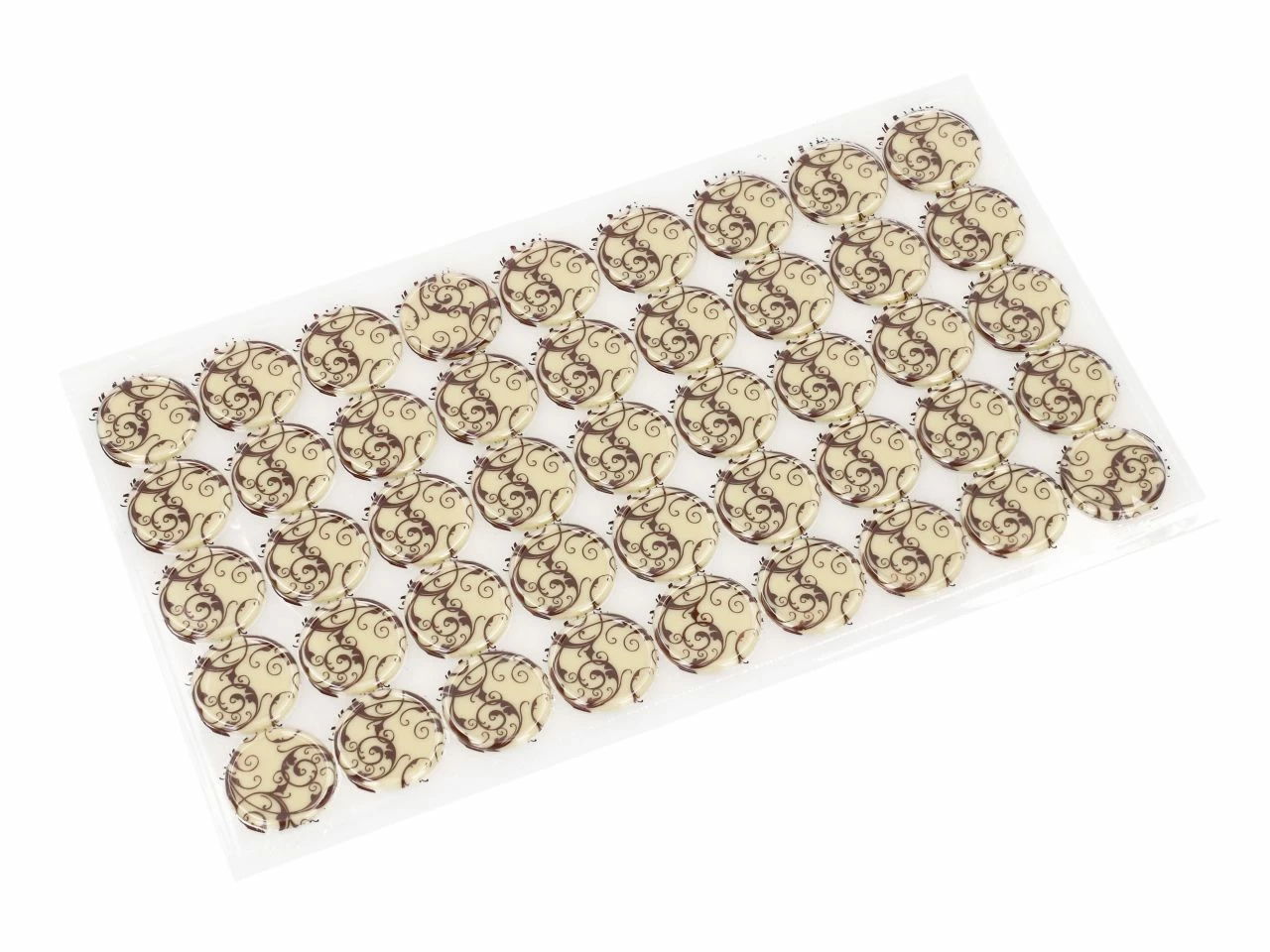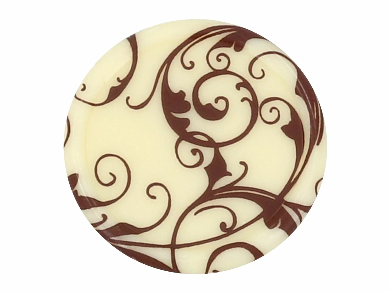 Die glutenfreien Aufleger-Kreise aus weißer Schokolade passen außerdem auf unsere Rundschalen für Pralinen aus Schokolade. Schenken Sie Ihren Lieben selbstgemachte, gefüllte Pralinen und Gebäck, verschönert mit diesem Auflegern aus feinster weißer Schokolade.
