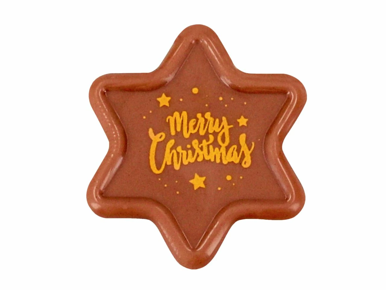 Die glutenfreien Aufleger-Sterne aus Milchschokolade passen außerdem auf unsere Stern-Schalen für Pralinen aus Schokolade. Schenken Sie Ihren Lieben selbstgemachte, gefüllte Pralinen und Gebäck zu Weihnachten, verschönert mit diesem Auflegern aus feinster Vollmilchschokolade.