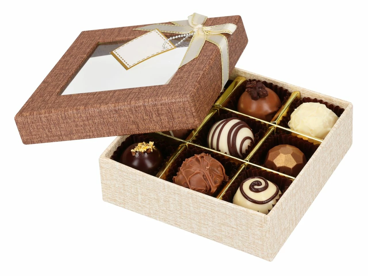 Im Lieferumfang sind die Pralinen und die Papierkapseln nicht enthalten.
