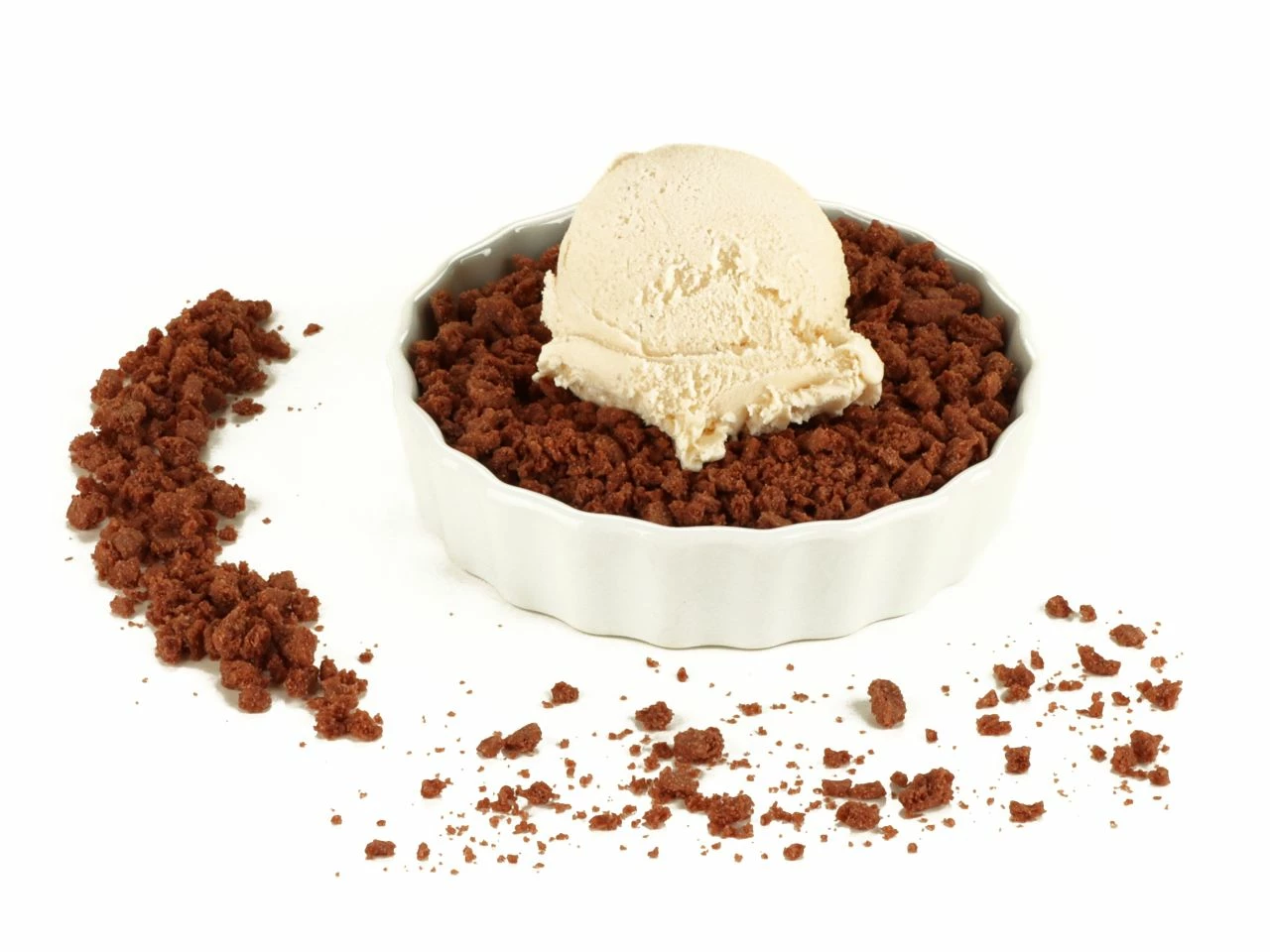 Verfeinern Sie Ihre Torten, Kuchen, Cupcakes und Desserts mit den dunkelbraunen Cookie Crumbs Cocoa zu 100 g aus Kakao, mit leichter Zimtnote. Die gemahlenen Kakaokekse krümeln sich als köstliche Dekoration ins Herz Ihrer Gäste.