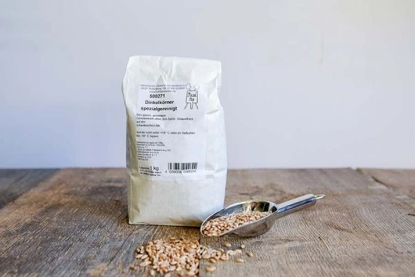 Die Dinkelkörner entstammen den Sorten Franckenkorn und Zollernspelz.