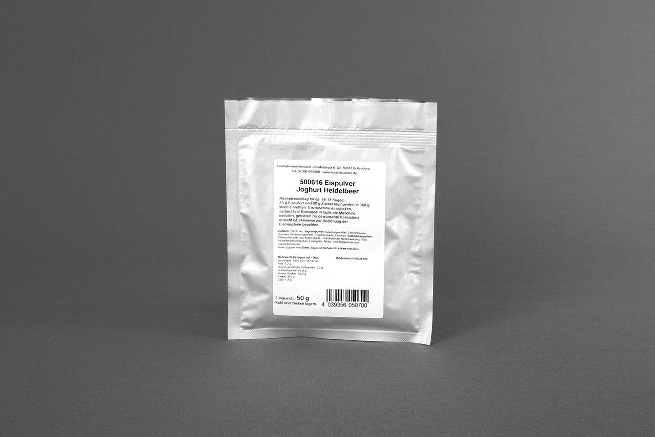 Aus diesem Eispulver zaubern Sie im Nu in der eigenen Küche ein erfrischendes, cremig köstliches Eis. Das Joghurt-Heidelbeer-Eis bringt Ihnen und Ihren Gästen ein frisch-fruchtiges Geschmackserlebnis.