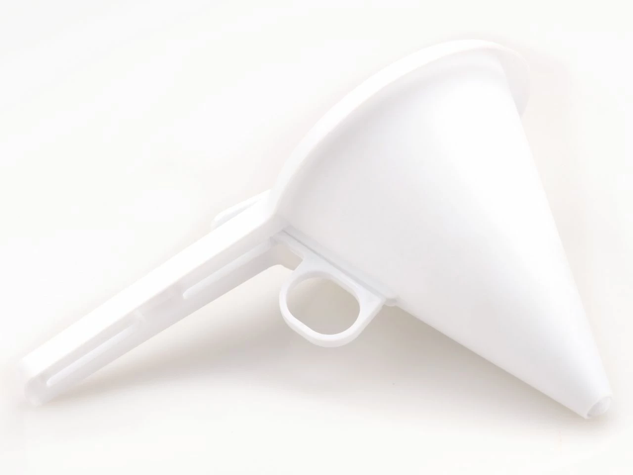 Der Trichter hat eine Dosieröffnung von 8 mm, er ist insgesamt 13 cm hoch und die Einfüllöffnung misst 9,5 cm. Der Kunststoff-Fülltrichter lässt sich leicht von Hand reinigen.