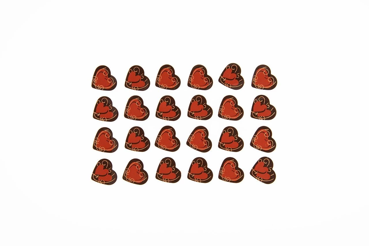 Die Schokoaufleger passen perfekt auf unsere herzförmigen Pralinenhohlkörper.