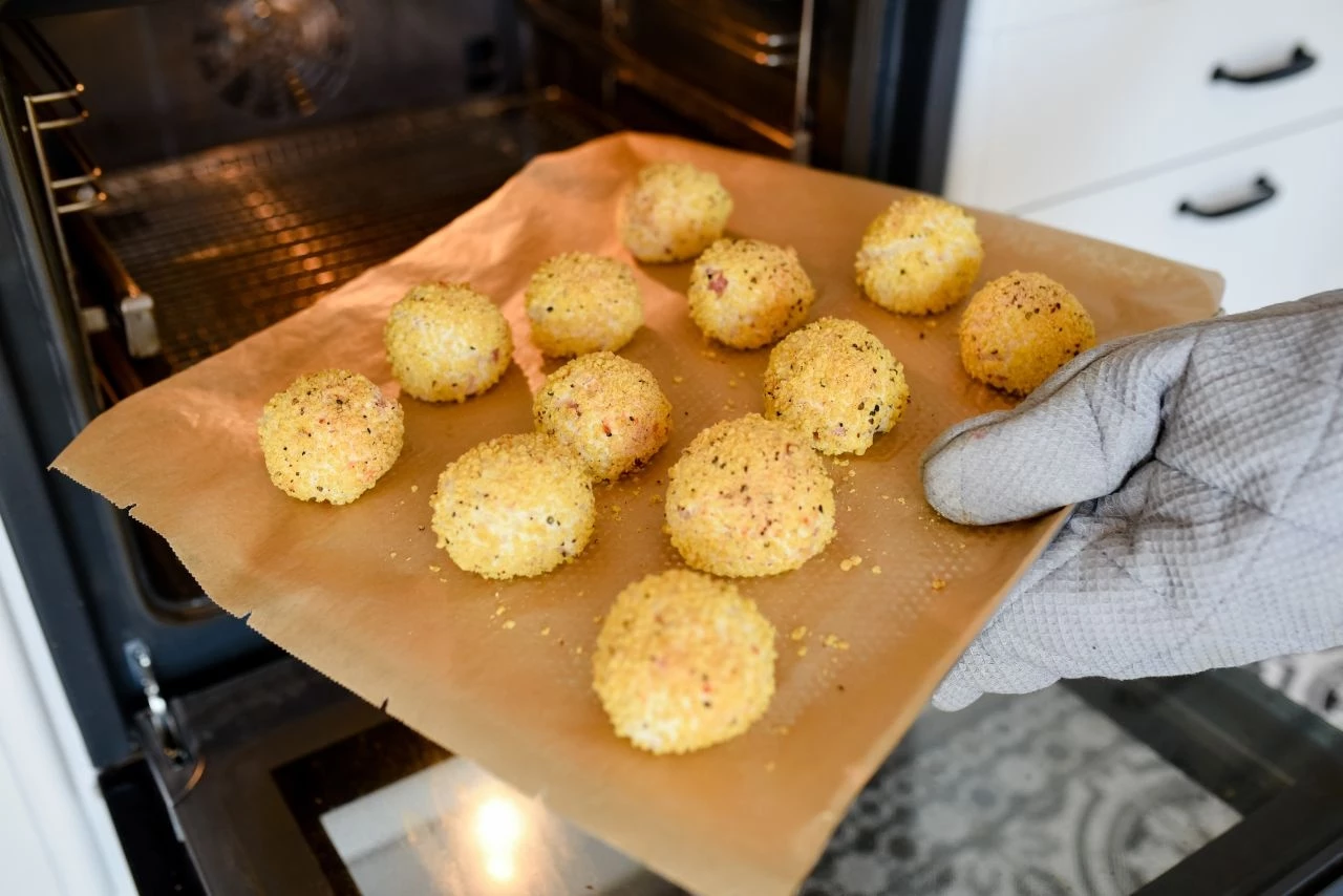 Die frisch gebackenen Käsebällchen sofort verzehren!