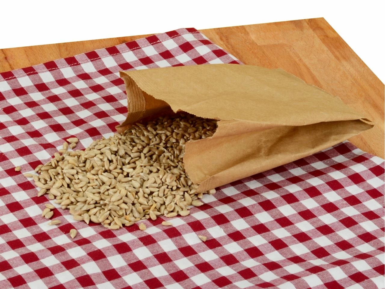Nachhaltig werden die geschälten Sonnenblumenkerne zum Backen in einer Papiertüte geliefert. Bitte lagern Sie sie trocken.
