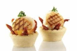 Das Macaron ist ein französisches Baisergebäck aus Mandelmehl, dessen Herkunft bis ins Mittelalter zurückreicht. In Frankreich werden viele Varianten von traditionellen Macarons gebacken, davon ist heute das bunte Macaron in Form einer kleinen Doppelscheibe mit einer Cremeschicht darin am weitesten verbreitet. Die Baiserböden des Doppelkekses werden aus Eiweiß, Puderzucker sowie sehr fein gemahlenen Mandeln zubereitet und mit Lebensmittelextrakten gefärbt. Die Füllung besteht gewöhnlich aus Buttercreme, Ganache oder Konfitüre in den verschiedensten Geschmacksrichtungen und wird mit einem Dressierbeutel auf den unteren Boden aufgetragen, ehe dieser mit einem zweiten Boden bedeckt und leicht zusammengedrückt wird. Ihrer Phantasie sind daher bei der Füllung keine Grenzen gesetzt. Eine tolle Idee für die Kaffebeilage oder einfach zum Naschen nebenher.