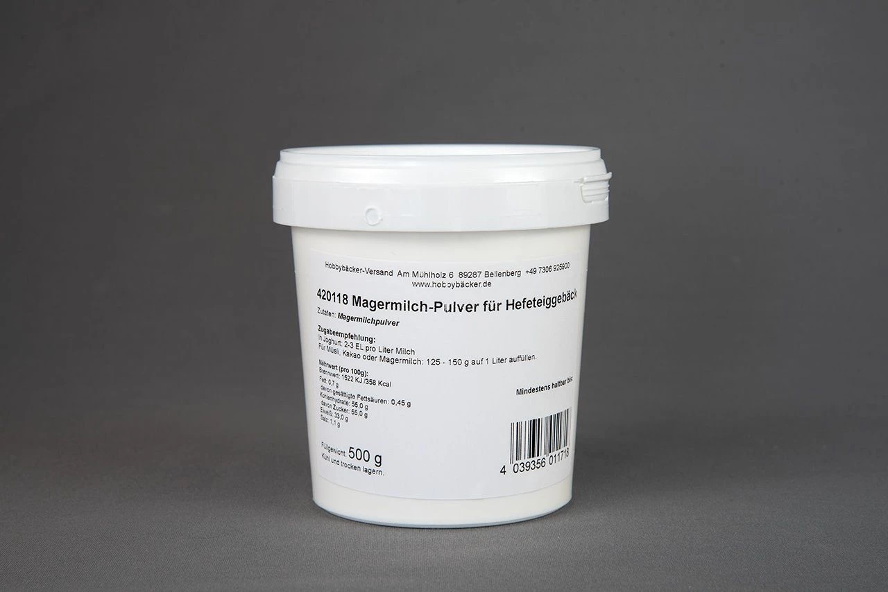 Wer Milch liebt, aber beim Fettgehalt lieber etwas aufpasst, ist bei unserem Magermilchpulver (MAMIPU) bestens bedient. Joghurt wird damit stabil und stichfest, Hefeteiggebäck lockerer und bleibt länger frisch. Verbessert den Geschmack von (Trink-)Schokolade und ist eine prima Protein- und Kalziumergänzung fürs Müsli.