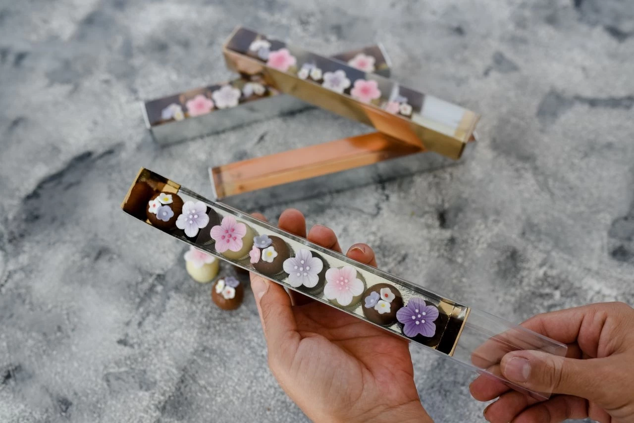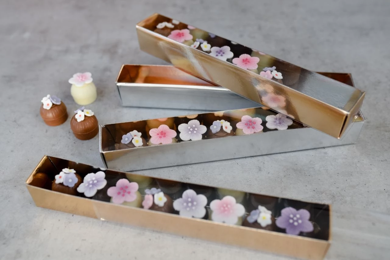 Sie haben die Wahl: Möchten Sie Ihre Pralinen lieber in Gold oder Silber präsentieren? Dann mit wenigen Handgriffen den hochglänzenden Karton zu einer wunderschönen Präsentverpackung falten und die Klarsichthülle darüber stecken. Ausreichend für 6 bis 8 Pralinen, je nach Größe.