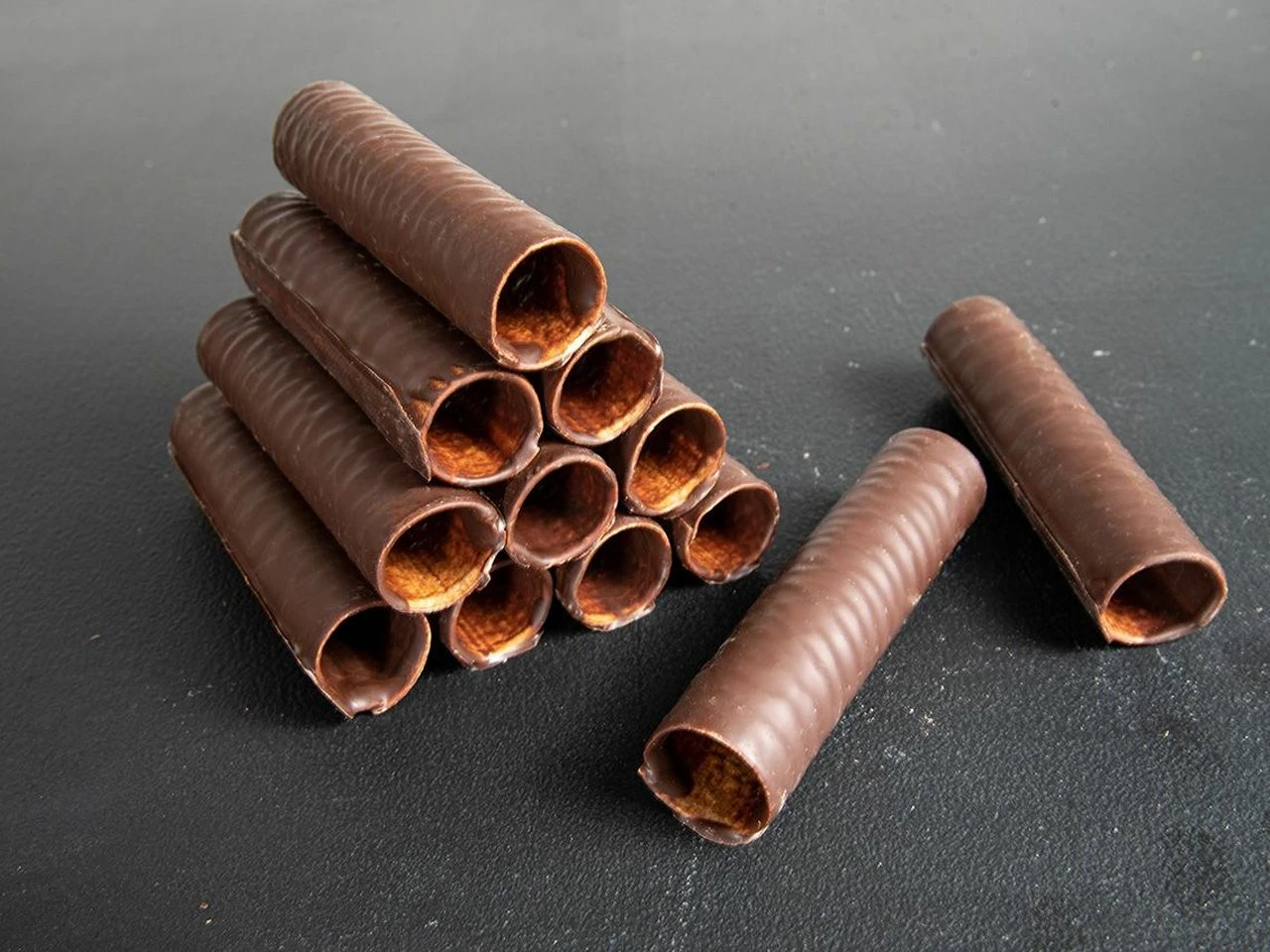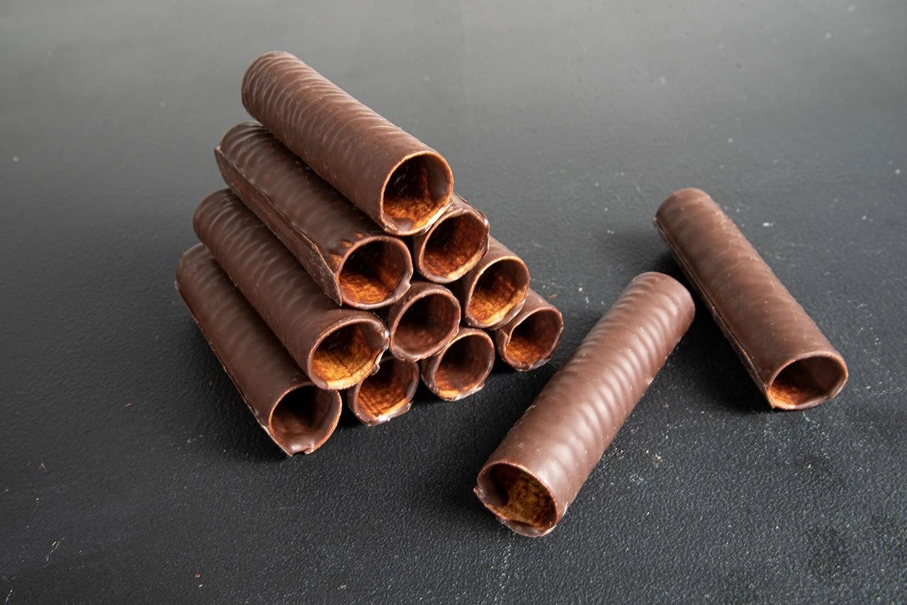 Schlotfeger gehören zu den köstlichsten Süßigkeiten, die die Konditorenkunst hervorgebracht hat. Und genau die können Sie jetzt selbst füllen. Unsere Zartbitter-Schlotfeger sind mit sehr viel Sorgfalt gebacken und zergehen praktisch alleine auf der Zunge. Füllen Sie die Schlotfeger vor dem Verzehr mit Sahne oder lockerer Leichtcreme und fertig ist die köstliche, knusprige Verführung.