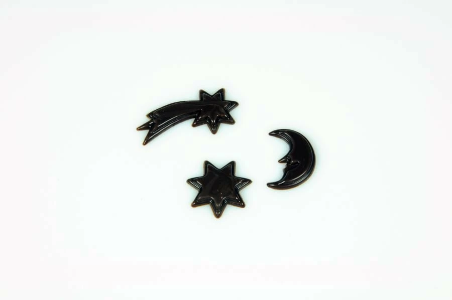 Einen wundervollen Nachthimmel zaubern Sie mit unseren Schoko-Auflegern Sternenhimmel aus Zartbitterschokolade auf Ihre Kuchen, Torten oder Desserts. Eine Kuchendeko für eine romantische Atmosphäre.