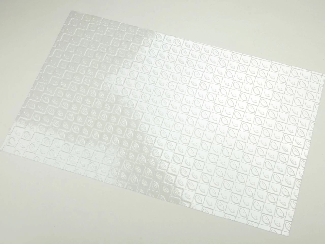 - Bei Torten und Dessert werden diese umgekehrt auf die Reliefmatte gesetzt und eingefroren. Nach dem Durchfrosten kann die Strukturfolie entfernt und wiederverwendet werden. Die Polyvinylchlorid-Folie bitte von Hand reinigen.