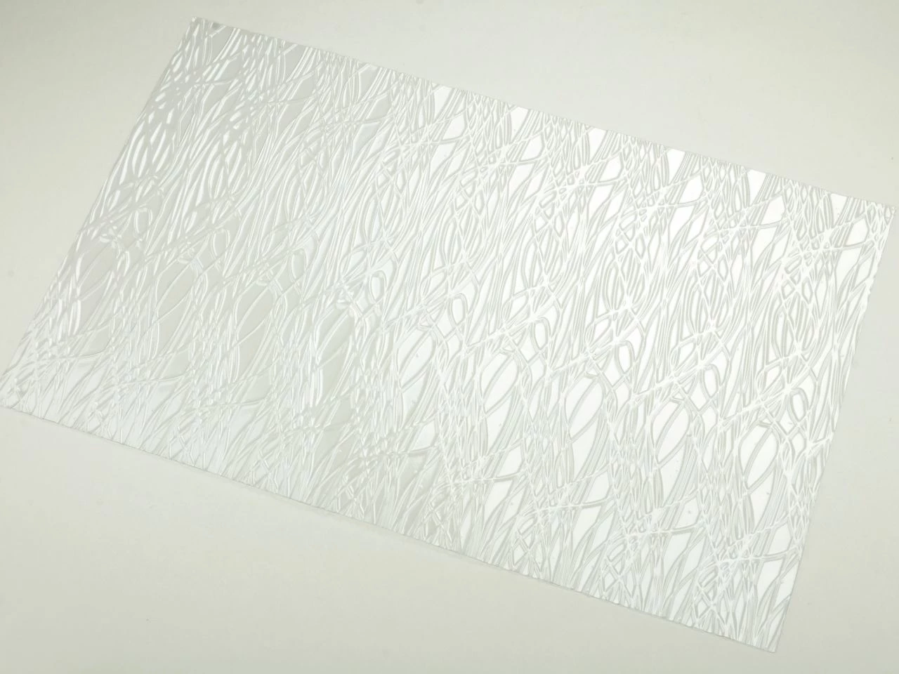 - Bei Torten und Dessert werden diese umgekehrt auf die Reliefmatte gesetzt und eingefroren. Nach dem Durchfrosten kann die Strukturfolie entfernt und wiederverwendet werden. Die Polyvinylchlorid-Folie bitte von Hand reinigen.