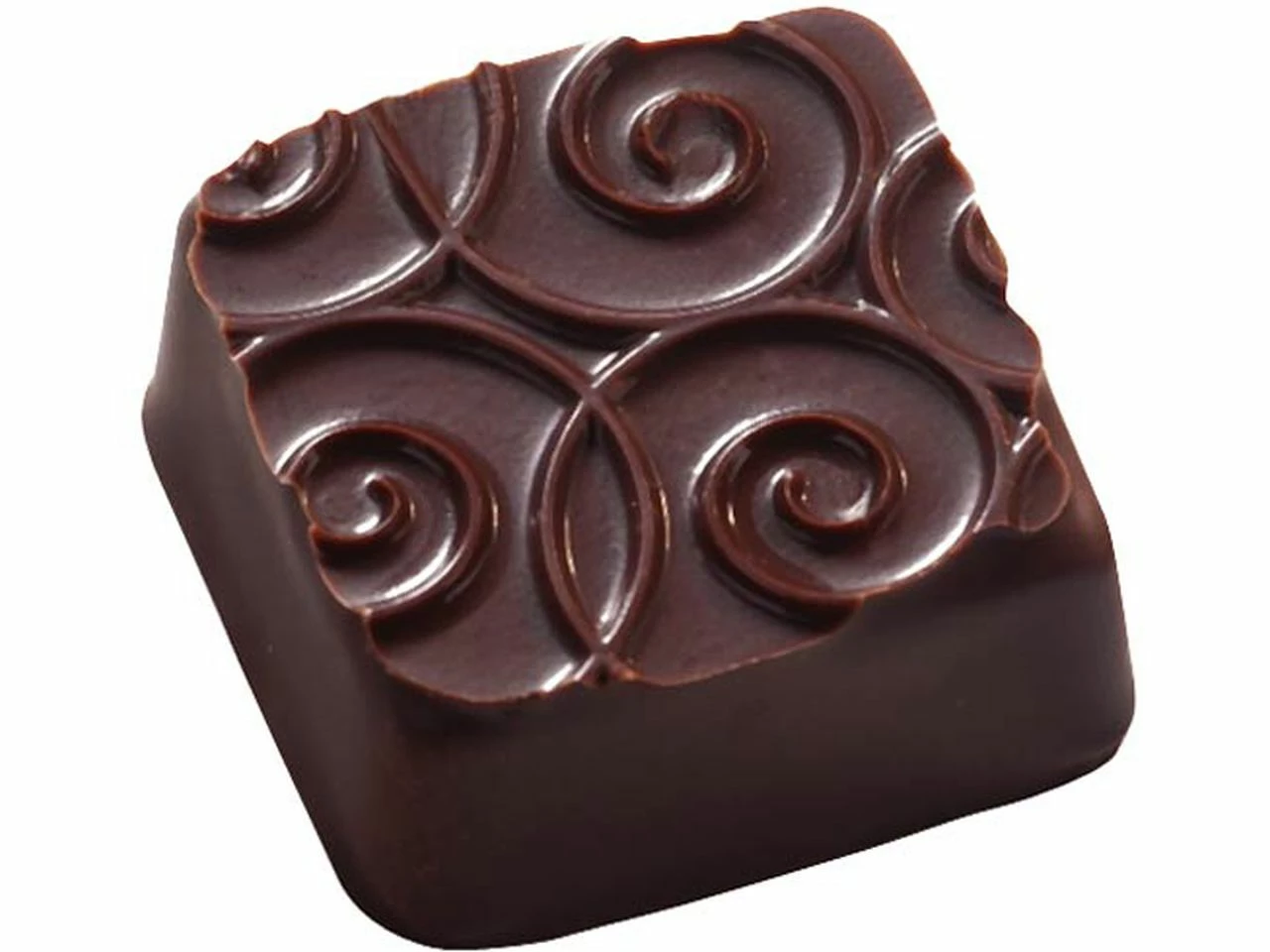 - Für Kuvertüre streichen Sie die temperierte Schokolade direkt auf die Folie oder schneiden die Relieffolie in Stücke und legen Sie sie über überzogene Pralinen, Kuchen oder Plätzchen. Die Folie wird nach Erhärten der Schokoladenkuvertüre abzogen.