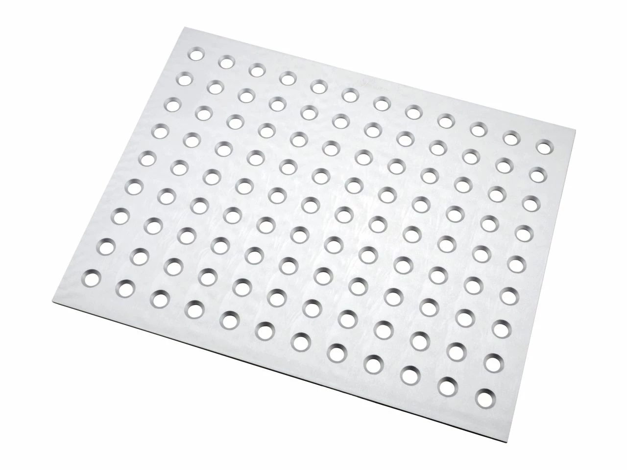 Füllen Sie dazu eine Lage Hohlkugeln 19mm (108 Stück) mit Spritzbeutel oder Spritzflasche. Verschließen Sie die Hohlkörper möglichst am nächsten Tag. Dazu legen Sie die Platte mit den kleinen Öffnungen nach oben auf die Lage Hohlkugeln. Anschließend geben Sie die temperierte Kuvertüre zum Verschließen auf die Platte und streichen Sie mit Schaber oder Palette die Kuvertüre in alle Öffnungen und ziehen Sie die überschüssige Kuvertüre ab. Jetzt können die Platte abnehmen und die Pralinen für ca. 30min in den Kühlschrank stellen. Danach lösen Sie die Pralinen aus der Folie und garnieren die Pralinen nach Ihren Wünschen.