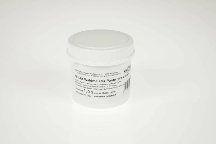 Unsere Waldmeisterpaste können Sie bedenkenlos verwenden, denn sie kommt ohne das oft Kopfschmerzen verursachende Cumarin aus, das in der Pflanze enthalten ist. So können Sie der Maibowle den Waldmeistergeschmack ganz ohne schädliche Nebenwirkungen verleihen. Einfach 30 bis 90 g Paste pro kg-Masse zugeben. Wir empfehlen anfangs eine vorsichtige Dosierung mit 30 g. In der wiederverschließbaren 250-g-Dose, enthält Alkohol.
