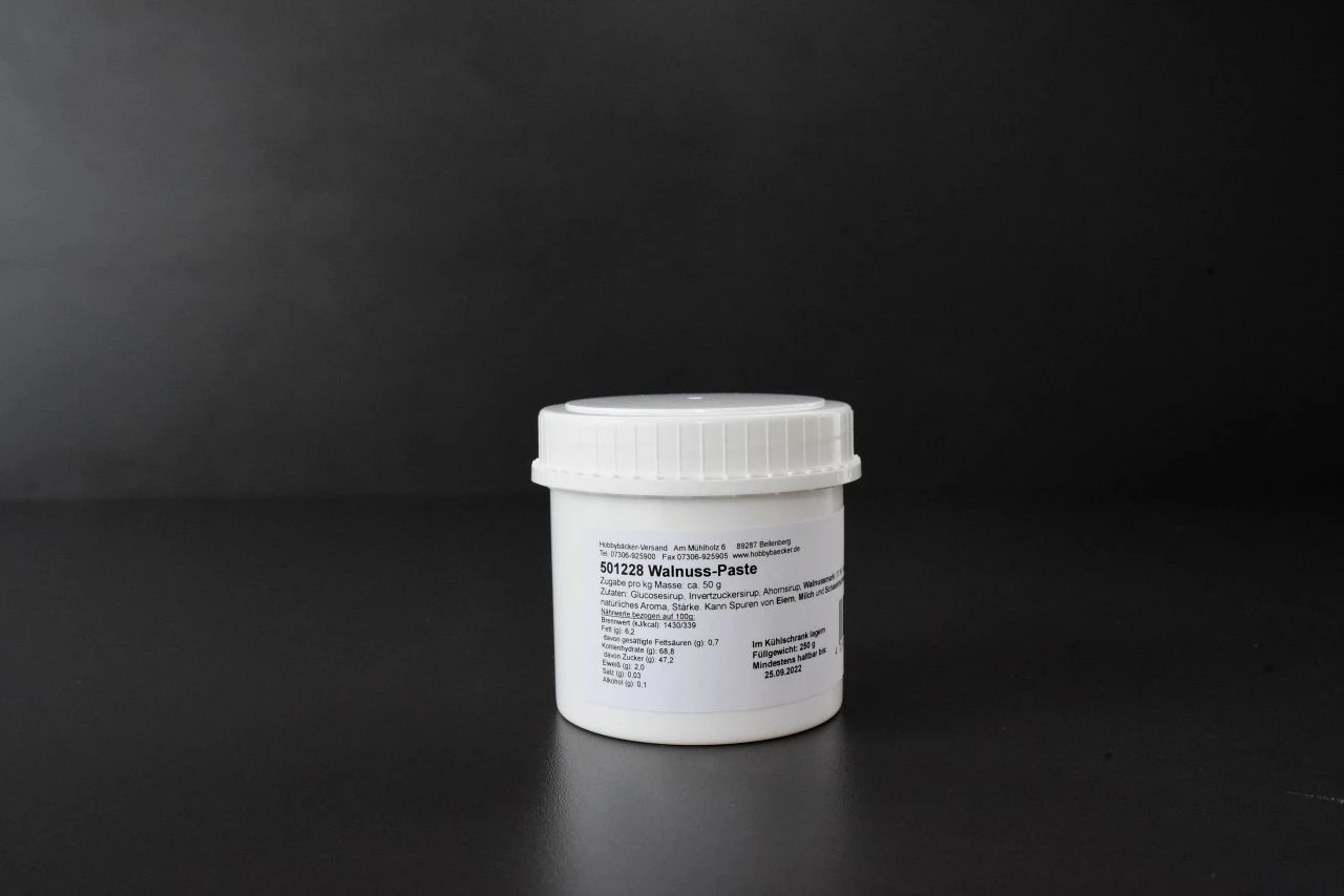 Lassen Sie sich verzaubern vom feinen Walnussgeschmack unserer Fruchtpaste. Einfach ca. 50 g der Paste pro kg-Masse zugeben, und Joghurt, Eis, Puddings, Pralinenfüllungen gewinnen durch das zarte Nussaroma. In der wiederverschließbaren 250-g-Dose.