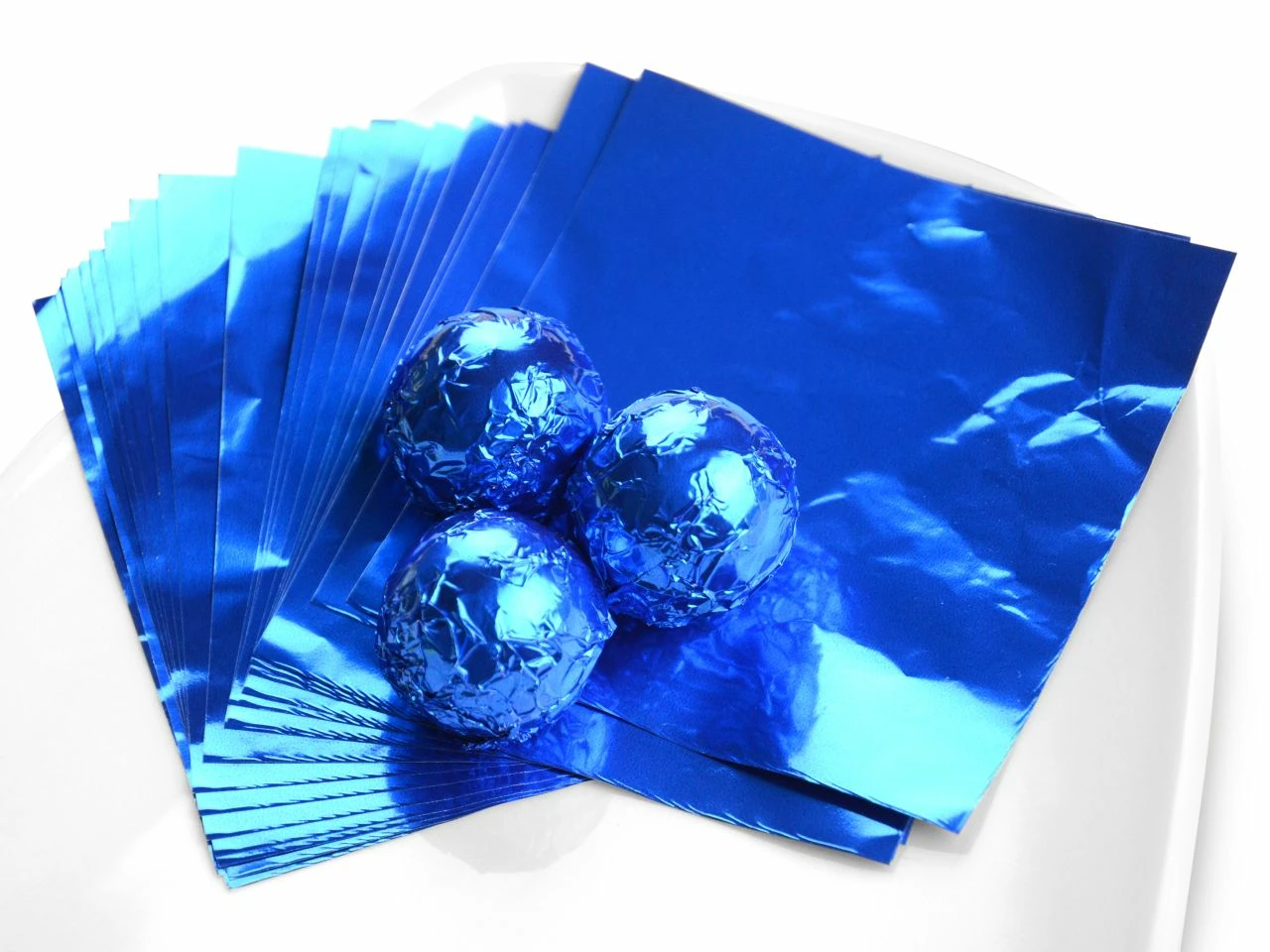 Farbige Aluminium-Wickelfolie um Pralinen, Trüffel, Lollis usw. zu verpacken. Die Bögen sind bereits zugeschnitten.